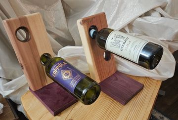 This 2 bottle holder is cedar with a purpleheart base.