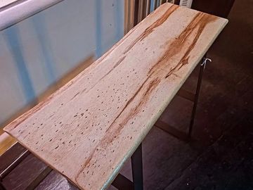 This is one of the few items that was not salvage. When we saw this bit of canarywood, we had to give it a home. Natural color.
