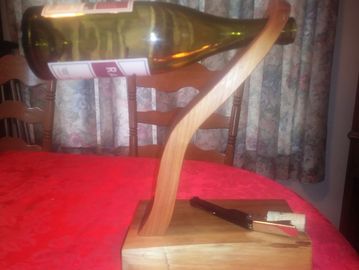 Cedar wine bottle holder with a straight stem. This one is sold, but I cam make on on demand. I can also use pine or oak and finish can vary for the same price.